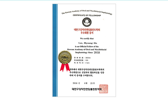 임플란트 관련하여 국내 권위 있는 학회인 구강악안면임플란트학회 우수 회원병원으로 다양한 학술행사 및 세미나에 참가하여 최신의 임플란트 수술법을 연구합니다.더 자연치아에 가까운 임플란트 수술