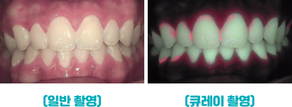 있는 세균은 해당 빛을 받아 붉은 형광을 나타냅니다. 이를 필터(고글)를 통해 확인할 수 있어 치태 및 치석, 치아 크랙은 물론 치아 우식까지 탐색할 수 있습니다.